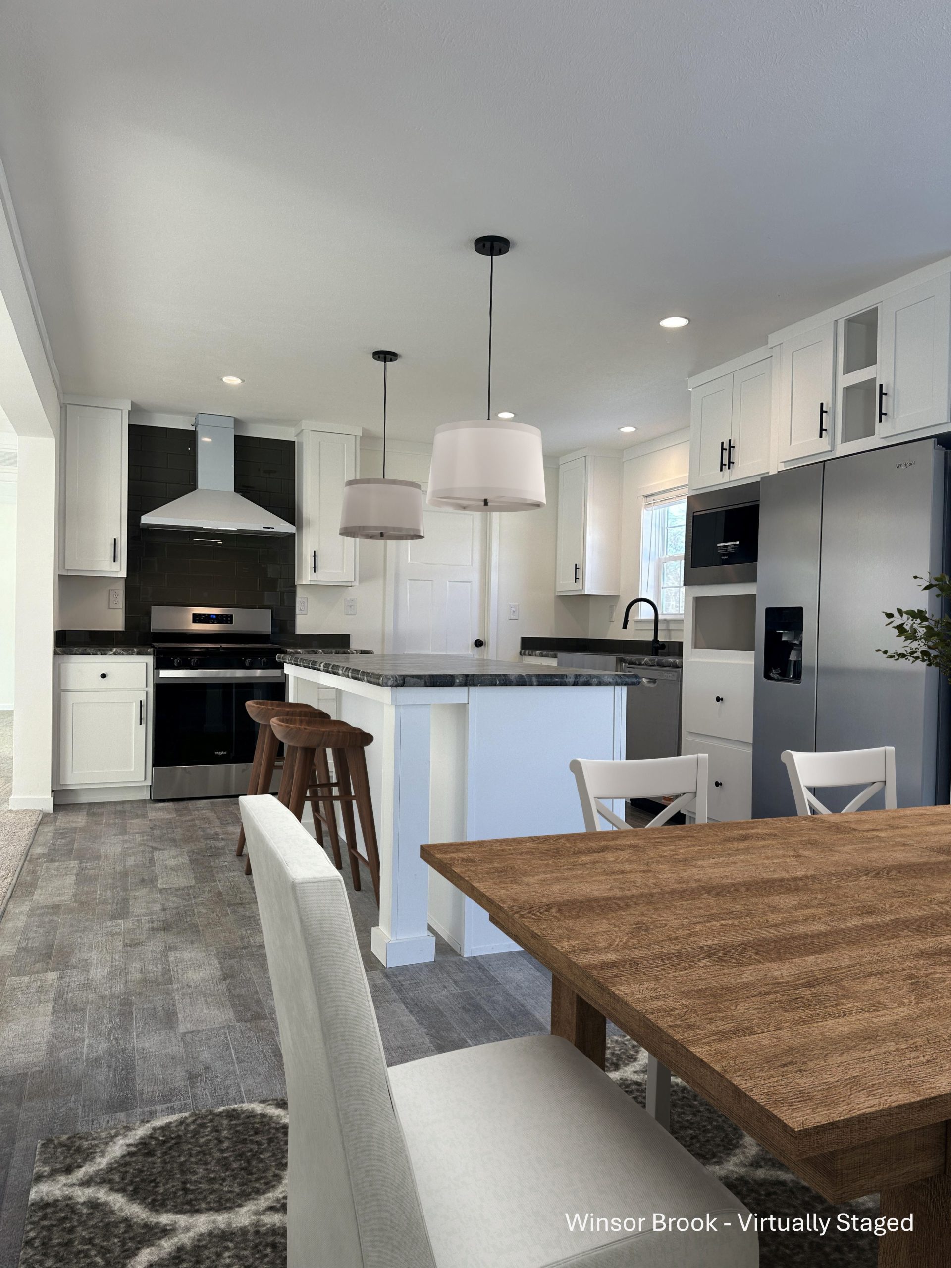 Welcome to Litchfield Estates – Where Comfort Meets Convenience! Step into this stunning brand-new double-wide home, thoughtfully designed with modern living in mind. This home has an open feel and comes standard with features such as painted drywall, living room entertainment center, hardwood kitchen cabinets with black hardware, farmhouse style sink, modern kitchen appliances including dishwasher and microwave and laundry hookups. Shared driveway. Ideally located just 10 miles from the Manchester Regional Airport and the Massachusetts border, this location is perfect for commuters and travelers alike! Pet-friendly with management approval. Park approval required – come see what makes Litchfield Estates the perfect place for you to call home!